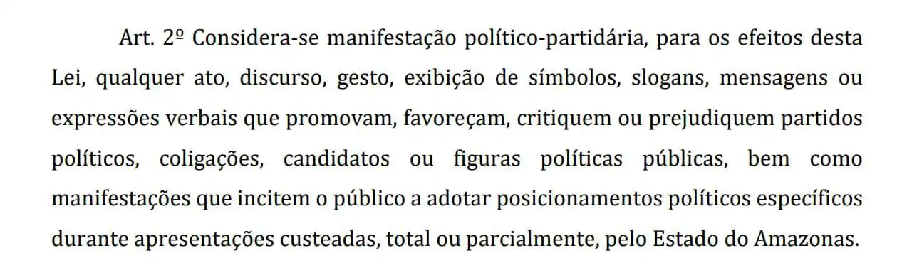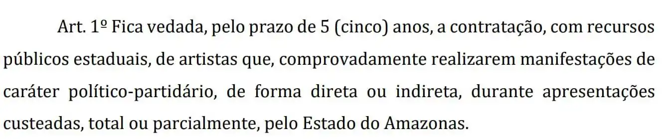 Manaus – A proposta de lei nº 811/2025, de autoria da deputada Débora Menezes, que prevê punições a artistas por manifestações políticas, segue sem avanço na Comissão de Constituição, Justiça e Redação (CCJR), responsável por analisar a constitucionalidade de projetos legislativos.